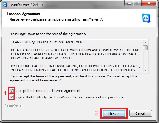 את שתי התיבות בתחתית החלון בנושא תנאי השימוש בתוכנה.